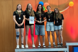Das Wettkampfteam der AK 15/16 weiblich, bestehend aus Laura Gartmann, Lena Gnilka, Smilla Leipold und Sophie Schnauffer, behauptete sich bei starker Konkurrenz im Mittelfeld und erreichte einen soliden 6. Platz. Noch erfolgreicher war unsere Mannschaft der AK 17/18 weiblich: Lana Kaufmann, Lara Kistler, Johanna Klarowitz, Kyra Plavsic und Svenja Richarz sicherten sich mit einer beeindruckenden Leistung den 2. Platz und sammelten mit dieser Platzierung ausreichend Punkte, um meldeberechtigt für die Deutschen Mehrkampf-Meisterschaften zu sein.