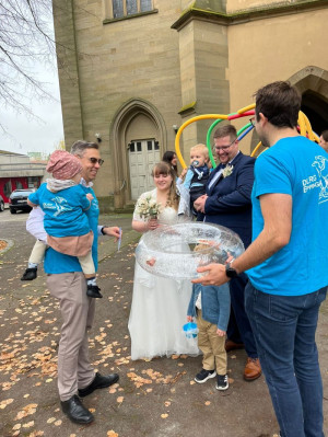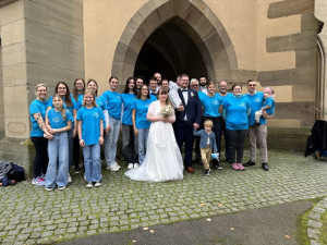 Am 26. Oktober 2024 gaben sich Alexander Werner (geb. Krist) und Jennifer Werner in der Evangelischen Kirche in Gemmingen das Jawort. Selbstverständlich ließen wir es uns nicht nehmen unseren stellvertretenden Vorsitzenden Alexander und seine Jennifer nach der Trauung mit einem dreifach donnernden „Patsch Nass“ gebührend in Empfang zu nehmen. Am Ende eines Spaliers aus Schwimmnudeln überbrachte unser Erster Vorsitzender, Tobias Schleyer, den frisch Vermählten unsere Glückwünsche.