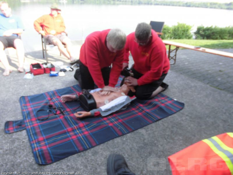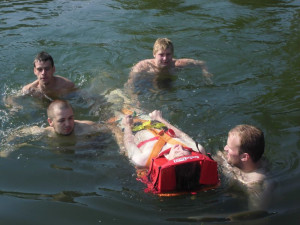 Neben dem Wachdienst standen dieses Jahr auch ein Kurs zum Deutschen Schnorcheltauchabzeichen (DSTA) und ein Fortbildungsprogramm auf dem Plan. Das Wachteam beschäftigte sich fast jeden Morgen mit einem anderen einsatzspezifischen Thema. So standen Verbände, Rettungsmittel, Rettung bei Verdacht auf Wirbelsäulenverletzungen und Herz-Lungen-Wiederbelebung (HLW) genauso auf dem Plan wie Knotenkunde, Funkübungen und Einsatztaktiken. Auch eine Einsatznachbesprechungen, die zum Glück nur einmal nötig war, fandt hier einen passenden Rahmen. Die allmorgendlichen Themen haben bei einem Teil der Mannschaft so großes Interesse geweckt, dass die DLRG OG Eppingen nun in Kooperation mit dem DLRG Bezirk Heilbronn, ein Fachausbildung Wasserrettungsdienst anbietet. Diese ist Grundbaustein für alle weitern Spezifikationen auf dem Gebiet der Wasserrettung in der DLRG.
