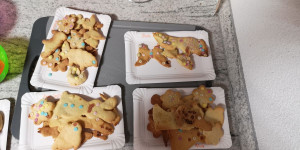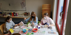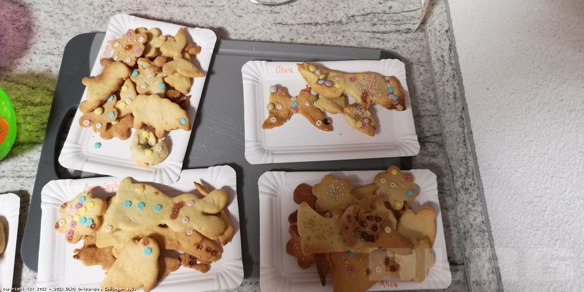 Nach der obligatorischen Gruppeneinteilung machten sich unsere Nachwuchskünstler*innen und -bäcker*innen sogleich mit Pinsel, Farbe, Teigroller und Ausstechform an die Arbeit. Während des dreistündigen Workshops konnten alle Teilnehmenden nach Herzenslust Leckereien und Gebasteltes rund um das Thema Ostern herstellen. An verschiedenen Themeninseln wurde für jeden Geschmack etwas geboten – ob beim Bemalen von Vogelhäuschen, Formen von Osterhasen aus Hefeteig oder Verzieren von feinen Ausstecherlen mit Lebensmittelfarbe und allerlei Zuckerstreuseln. Selbstverständlich wurden die Plätzchen nach dem Auskühlen direkt vom Blech stibitzt und für gelungen befunden. Kurz vor 17.00 Uhr trudelten bereits die ersten Eltern ein und nahmen die Kunstwerke unserer Nachwuchsschwimmer*innen sichtlich stolz entgegen.