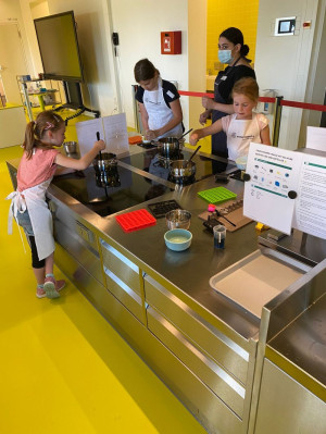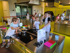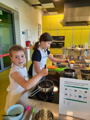 Während die Fruchtgummi-Masse fest wurde, durften unsere Nachwuchsforscherinnen und -forscher ihren Geschmackssinn im Rahmen einer Blindverkostung auf die Probe stellen und erfuhren in einem Quiz Wissenswertes über die Gummibärenproduktion in Fabriken. Schließlich war der spannende Moment gekommen: Die abgekühlten Leckereien wurden aus den Formen gelöst, für gelungen befunden und transportsicher verpackt.