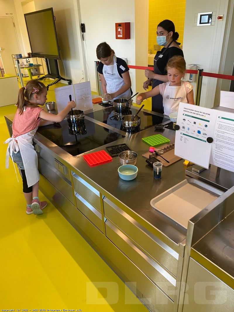 Wir, die DLRG Jugend Ortsgruppe Eppingen e.V., besuchten am Samstag, den 11. Juni 2022, mit 9 Kindern und Jugendlichen den Laborkurs „Kleine Gummibärenfabrik“ in der experimenta Heilbronn.